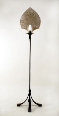 Schlanker Bodenleuchter, ca. 180 m hoch. Mit geschmiedeten und versielbertem Plager in Form eines Blattes.