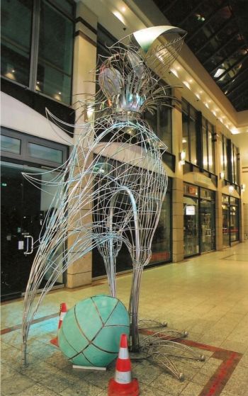Für eine Kunstausstellung von Fischer-Art fertigten wir einen 6m hohen Vogel aus Edelstahl- Rundmaterial 8 und 10 mm. Die Halskrause besteht aus 200m Blechstreifen 0,8mm.