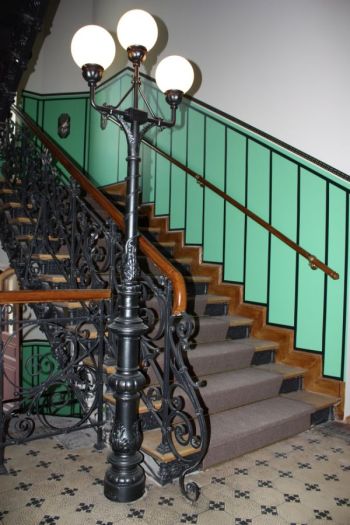 Für ein Jugendstilhaus am Nikischplatz in Leipzig rekonstruierten wir 2012 die 3 armigen Kandelaber im Treppenhaus auf der Grundlage der historischen Bauakte und einen noch vorhandenen Gussfuß.